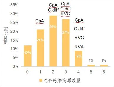 在解读仔猪腹泻诊断结果时,检测到的细菌或病毒载量是一个关键因素。在PCR检测中,较低的Ct值通常指示较高的病毒载量,这进一步支持其作为腹泻病原体的作用。本研究中,Ct≤26(CpA)和Ct≤32(其余病原体)(图2)被视为高载量,PEDv除外。后续的结果和图表仅考虑那些高载量的样本。