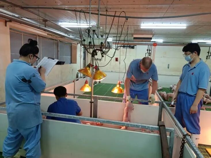经过农场部门主管申请、PDS领导筛选,“与心同靴”的第一站已在志丹场成功完成。期间,志丹保育主管李海军为PIC®中国产品开发与供应高级总监David Casey博士提供了带教工作。David在现场切实完成了农场的打疫苗、断奶前栏舍准备、断奶赶猪、抄耳牌等操作。
