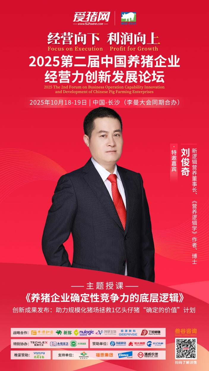 为了让养猪的朋友们更好地了解新逻辑营养的创新技术和模式,公司将于2025年10月18日上午,在2025李曼养猪大会期间由爱猪网举办的第二届养猪企业经营力创新发展论坛上,举行助力规模化猪场拯救1亿头仔猪“确定的价值”计划发布仪式。