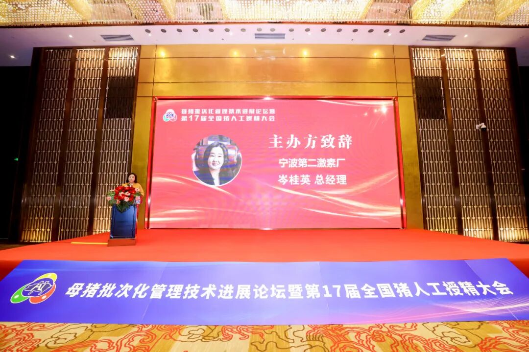 随后,作为本次大会的联合主办单位,宁波第二激素厂总经理岑桂英女士在开幕式上致辞。岑总表示,近几年来,全国猪人工授精大会都把主题瞄准了母猪批次化管理技术,这与宁波激素二厂的生产经营理念不谋而合!共同为养猪人搭建批次化管理技术沟通交流的桥梁。