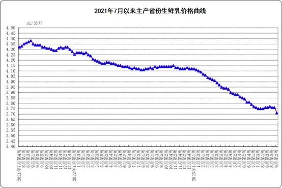 内蒙古、河北等10个主产省份生鲜乳平均价格3.71元/公斤,比前一周下跌1.3%,同比下跌10.2%。