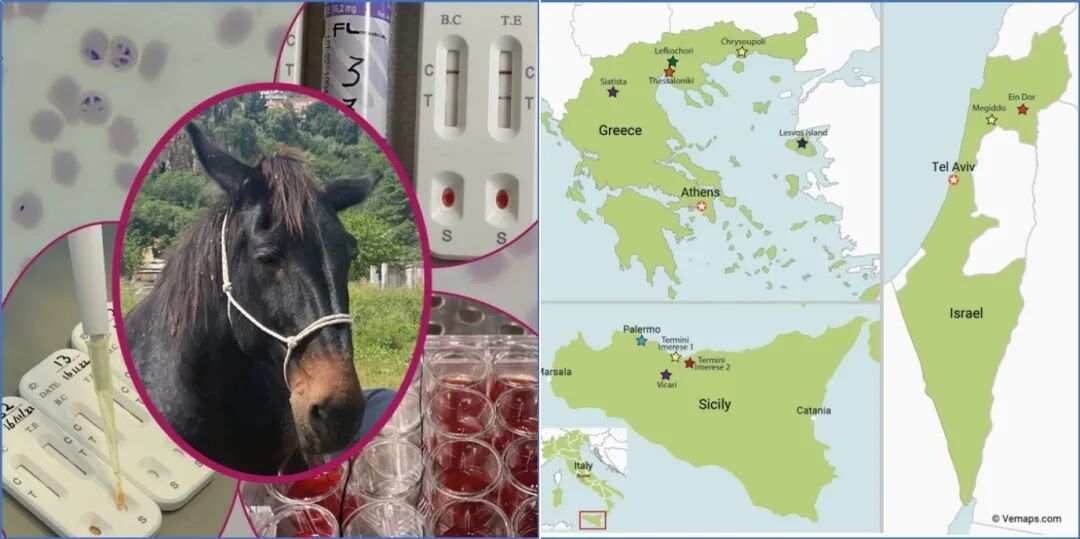 哈兽研联合Frans教授等欧洲地中海地区国际同行,对希腊、意大利和以色列3个国家的10个农场的150匹马和105头驴进行了血清采集,利用哈兽研研发的马梨形虫竞争ELISA和胶体金抗体检测试剂,对样品进行了现场比对检测和分析。结果表明,马梨形虫胶体金抗体检测卡适用于在欧洲的田间现场检测,具有快速、准确、操作简单的优点,并且与竞争ELISA检测结果有较高的符合率。此外,发现这两种寄生原虫的血清阳性率,在意大利最高,其次是希腊和以色列,驴的阳性率要大于马。Frans教授表示,将哈兽研研发的马梨形虫胶体金抗体检测卡引进到国际马属动物养殖及贸易行业中,非常必要,该检测方法的应用将更加快速帮助控制马梨形虫病对国际马业的影响。相关研究结果发表在媒介生物寄生虫领域的著名期刊《Parasites & Vectors》杂志上。