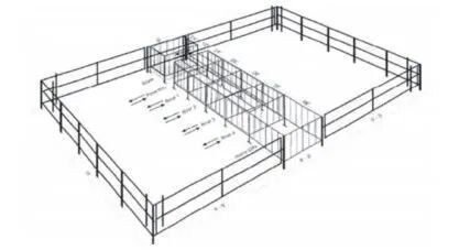 建设好特定的试情专区,如下图所示,放置5~6头朝向不同的性欲旺盛的成年公猪,后备猪母猪达到160日龄时,开始赶母猪到试情栏区进行诱情,每头母猪与公猪接触1~2min,每次放出12~15头后备猪进入试情区,每天进行两次初情期诱导,上午、下午各1次。当公猪与母猪接触时,试情人员仔细观察母猪的行为和表现,每天记录好发情母猪的耳号、发情时间,并录入数据系统。其他的饲养管理按公司常规的操作规程进行。