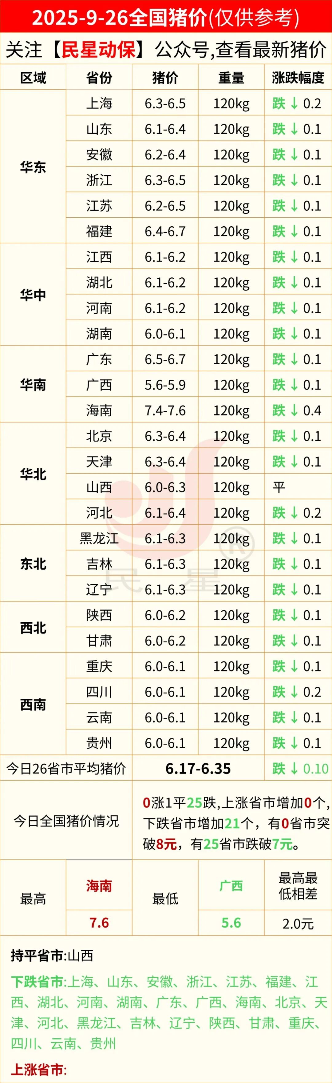 明日猪价|2025-09-26日~全国最新猪价(猪价已更新!)