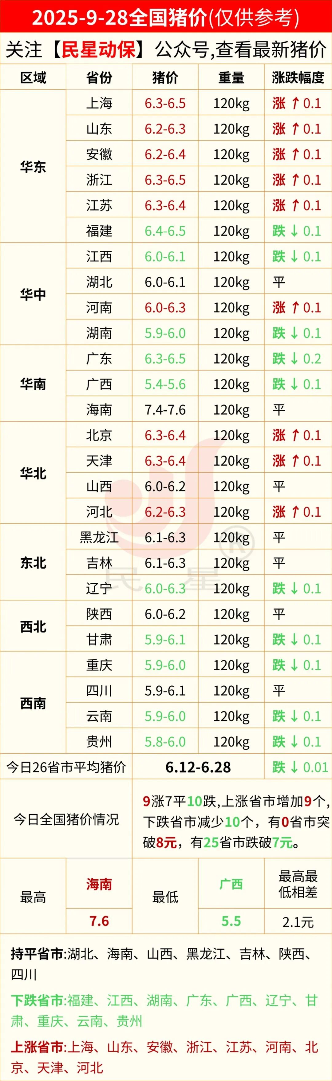 明日猪价|2025-09-28日~全国最新猪价(猪价已更新!)