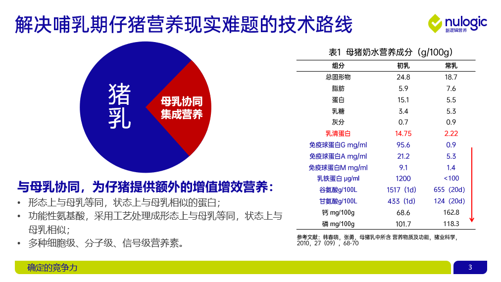 现代高产母猪产仔数达到16 - 18头已较为常见,但母猪泌乳能力并未随着产仔数的增加而成比例提高。尤其是从产后14天开始,母猪的泌乳量基本达到峰值并逐步下降,而仔猪的实际需求却随着体重的增加成倍增长。同时,母乳中的乳蛋白、免疫球蛋白、生物活性物质等的含量也开始降低,导致14 - 24天猪乳“量”与“质”的双重衰退,仔猪吃不饱、吃不好的情况成为常态。