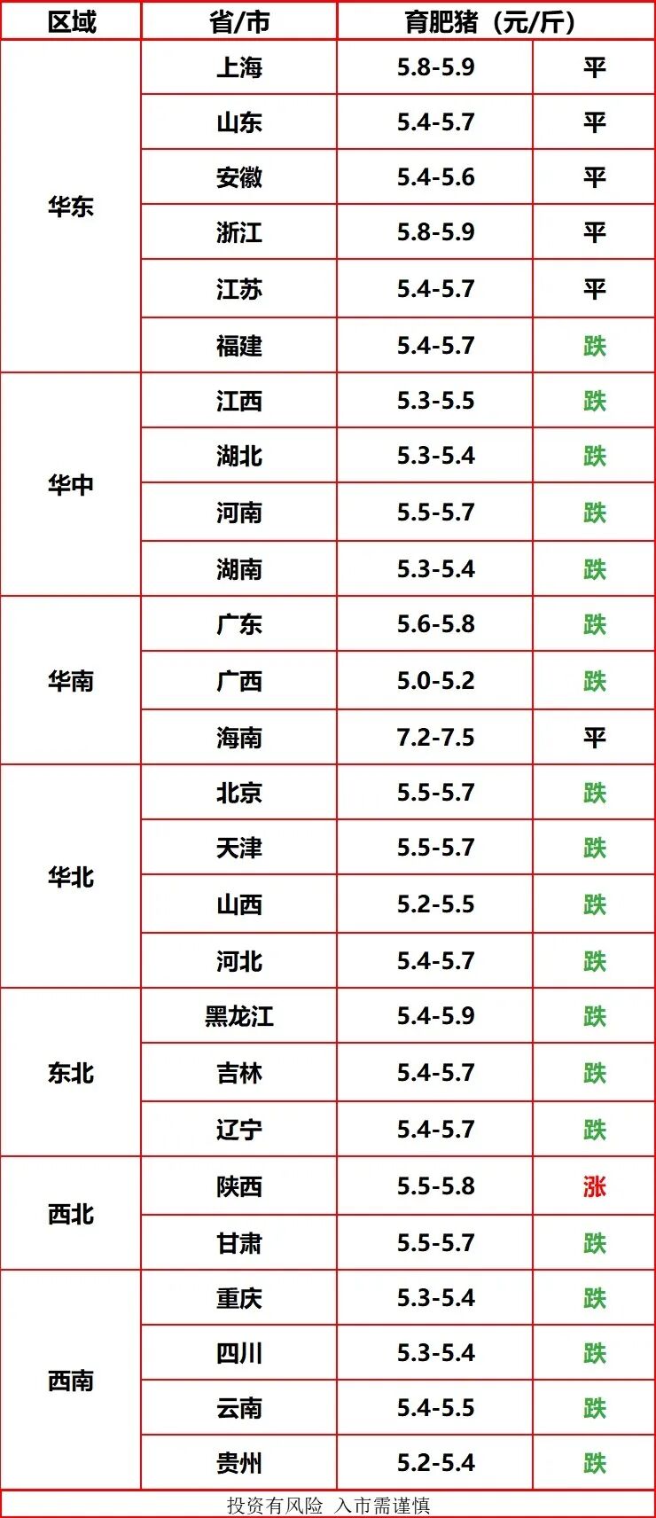 【今日猪价】10月13日 全国猪价
