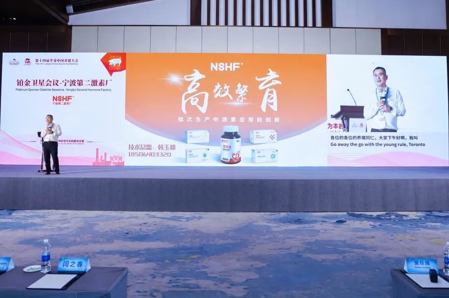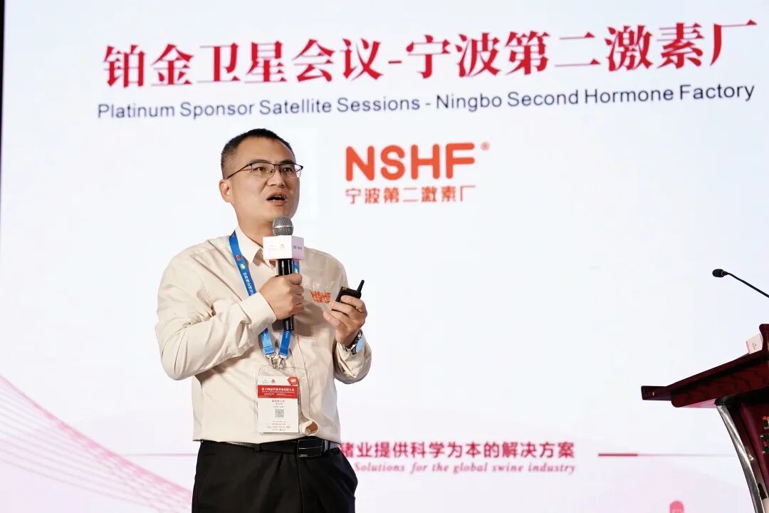 10月19日下午4:30-5:30,在长沙国际会议中心的星沙厅召开宁波第二激素厂专场铂金赞助商卫星会,宁波第二激素厂技术总监韩玉帅、大好河山猪业生产总监李陈凡作了专题报告分享。
