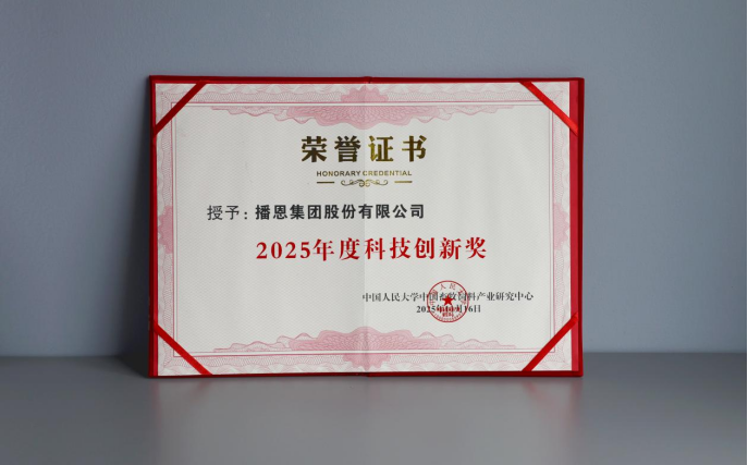 “2025年度科技创新奖”的授予,既是行业对播恩现有技术实力的权威认可,更彰显了对播恩持续以技术创新赋能农牧产业高质量发展的殷切期待。