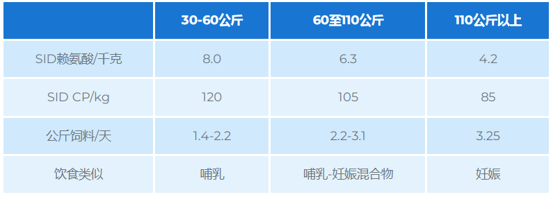 当前,针对DanBred后备母猪的营养建议目标是: