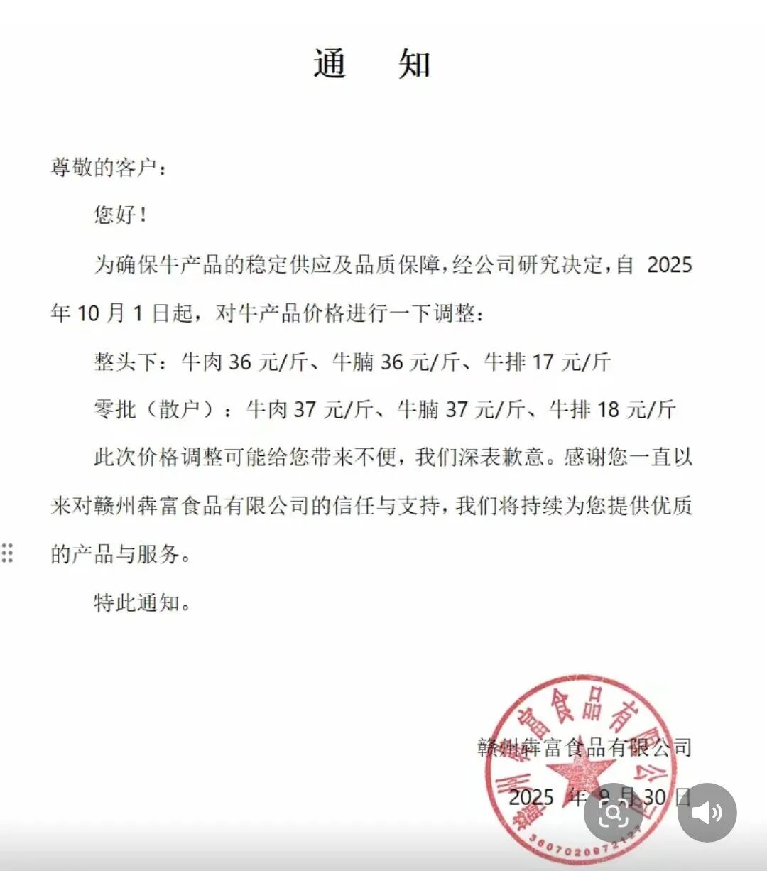 一天一个价!牛肉厂商齐发涨价函,新一轮“涨价潮”来了?