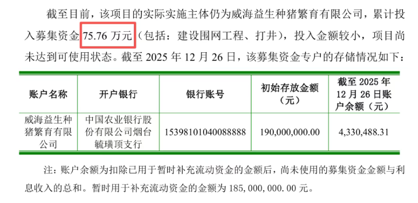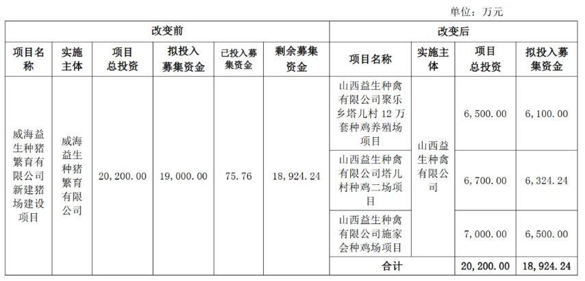 益生股份此次终止的“威海益生种猪繁育有限公司新建猪场建设项目”,原计划投资2亿多元,建设期两年。然而,自项目启动至今,实际投入资金仅75万余元,建设进度缓慢直至最终决定停止。公司坦诚,做出这一决定主要基于对当前生猪行业的审慎判断。
