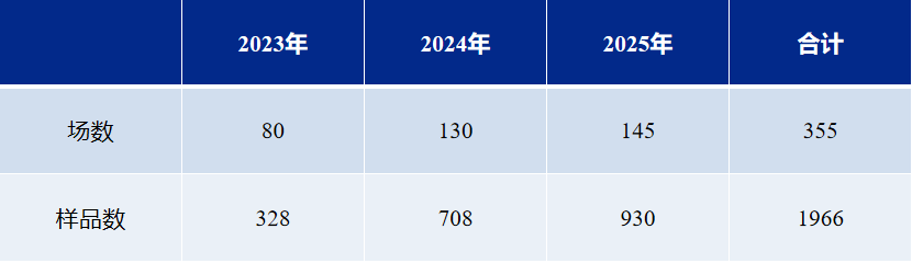 表1、2023-2025年检测母猪场数量及样品数量