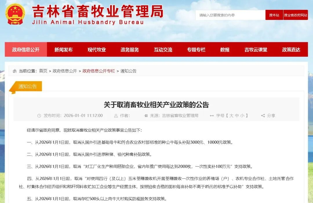 2026 年年初,吉林省畜牧业管理局先后发布产业扶持政策优化调整通知及相关产业政策取消公告,一系列新规的出台不仅牵动着全省畜牧业发展的方向,也让养猪行业的专业养殖户和养殖场工作人员格外关注。作为畜牧业的重要组成部分,养猪业在此次政策调整中既面临部分补贴的变化,也迎来了明确的发展导向,这些信号都与日常养殖生产息息相关。