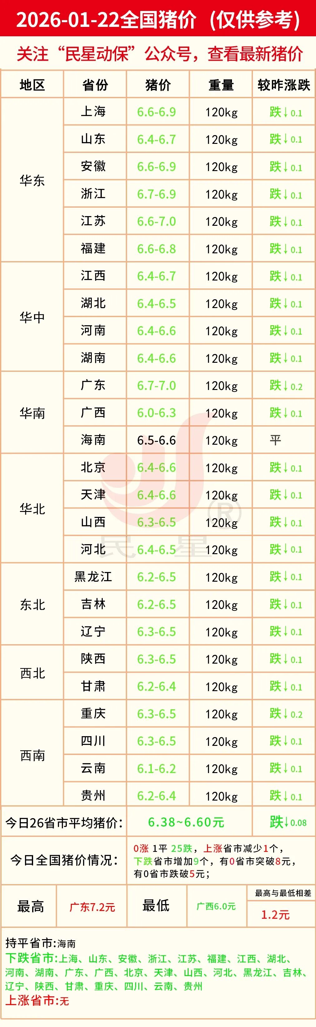 明日猪价—2026年01月22日(全国最新生猪价格)
