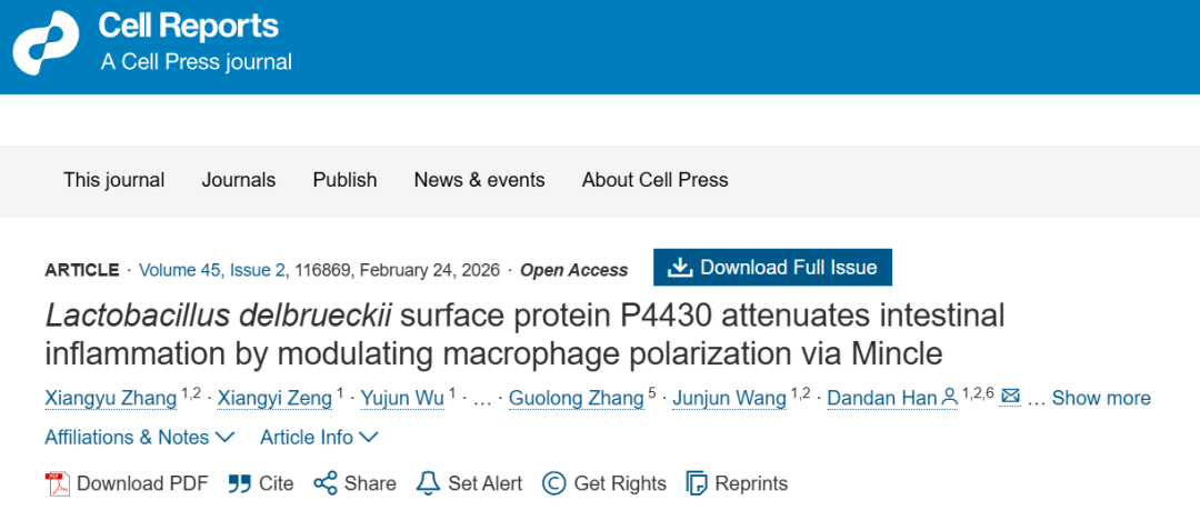 实验表明,P4430能够直接与免疫细胞表面受体Mincle结合,从而抑制巨噬细胞向促炎类型分化,减轻肠道炎症反应。在细胞实验中,添加P4430能剂量依赖性地降低炎症因子表达;在动物模型中,腹腔注射P4430蛋白能显著缓解小鼠结肠炎症状,效果与德氏乳杆菌活菌相当,甚至在一定剂量下优于传统抗炎药物5-ASA。