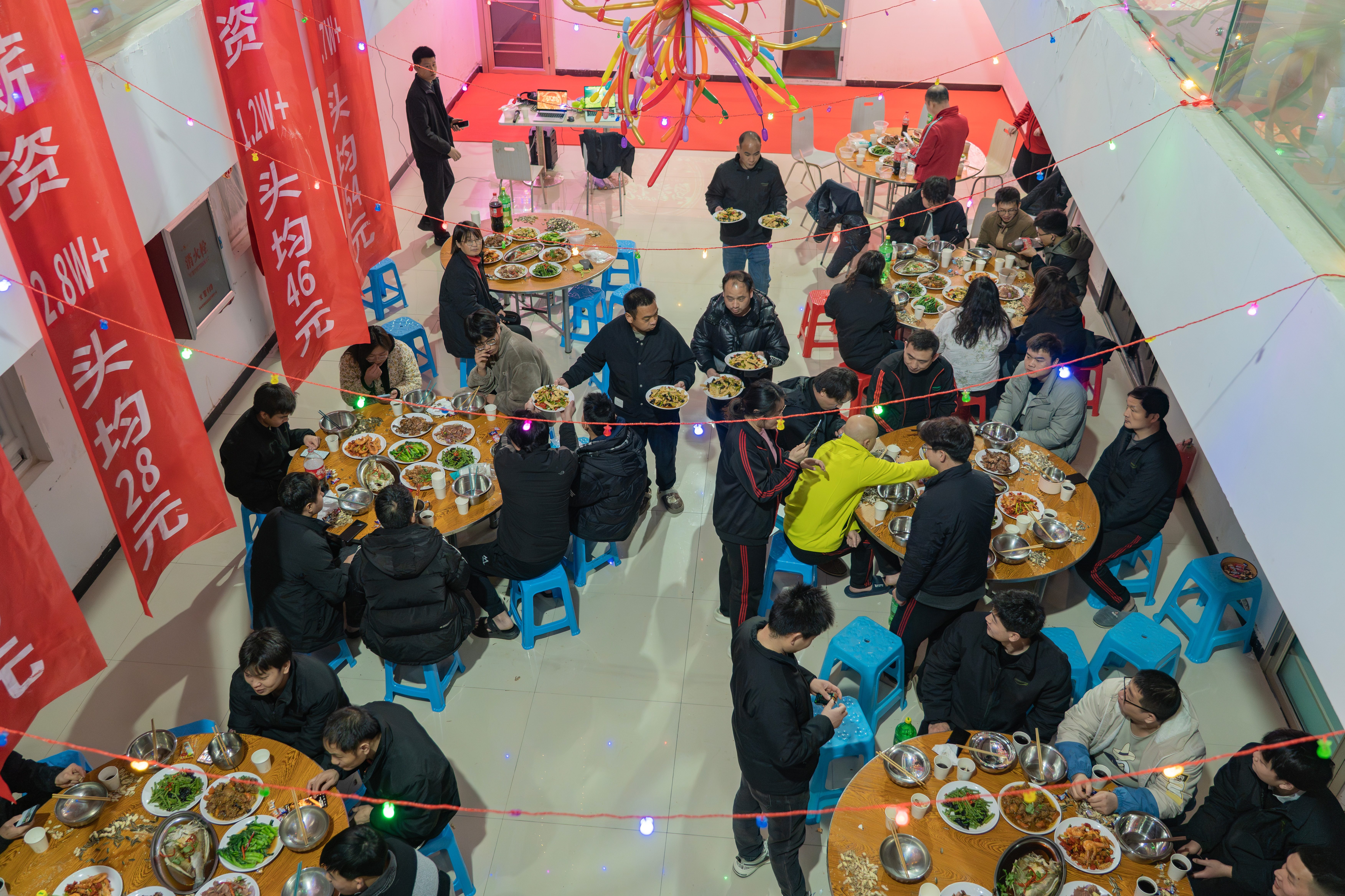 走进内乡牧原综合体生活区,红灯笼高高悬挂,春联贴满门窗,处处洋溢着浓浓的年味儿。食堂里,工作人员早已备好丰盛的团圆饭,清蒸鲈鱼、蒜蓉蒸生蚝、酱汁肘子等一道道美味佳肴陆续上桌,香气扑鼻;活动现场,趣味游戏、文艺表演轮番上演,员工与家属们围坐在一起,唠家常、玩游戏、看节目,欢声笑语不断,暖意融融。
