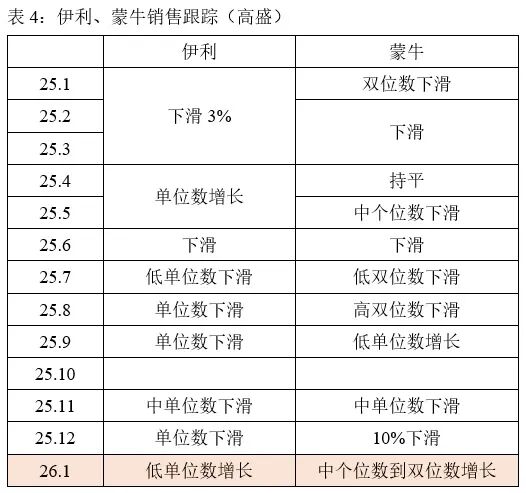 高盛跟踪数据给出了一个看似矛盾的图景:伊利、蒙牛1月销售都录得增长。