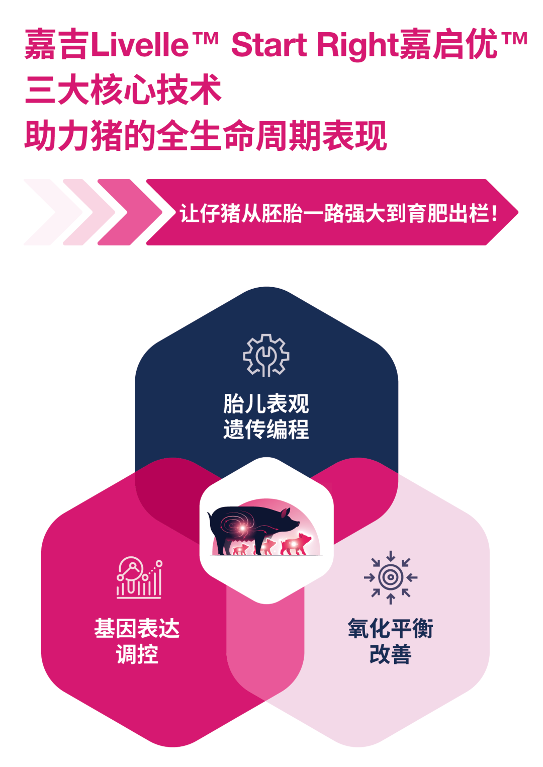 嘉吉Livelle™ Start Right嘉启优™通过运用生命早期营养科学,帮助养殖伙伴在现有硬件条件下,突破效率天花板。这不仅是技术的革新,更是效益的保障。从胚胎期开始投资,让科学营养成为您猪场可持续盈利增长的强大引擎。