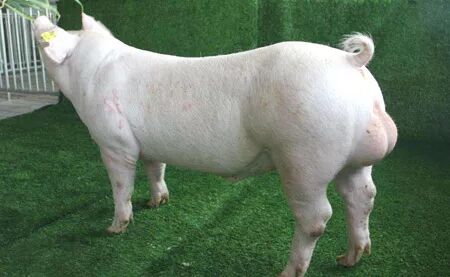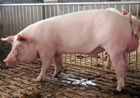 法系猪繁殖性能好,产活仔数平均14头,其体型较差,生长速度较慢,生长后期料比高,母猪营养水平需求高,若营养跟不上易发生产后瘫痪,法系猪主要长白、大白优秀,杜洛克无特点。