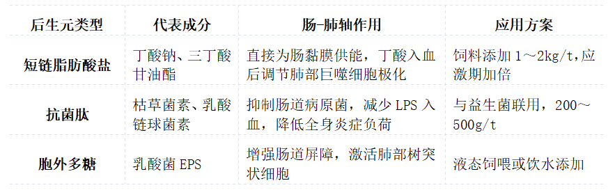 后生元(Postbiotics)是益生菌的代谢产物或菌体成分,具有稳定的生物学效应,是肠-肺轴调控的“精准武器”: